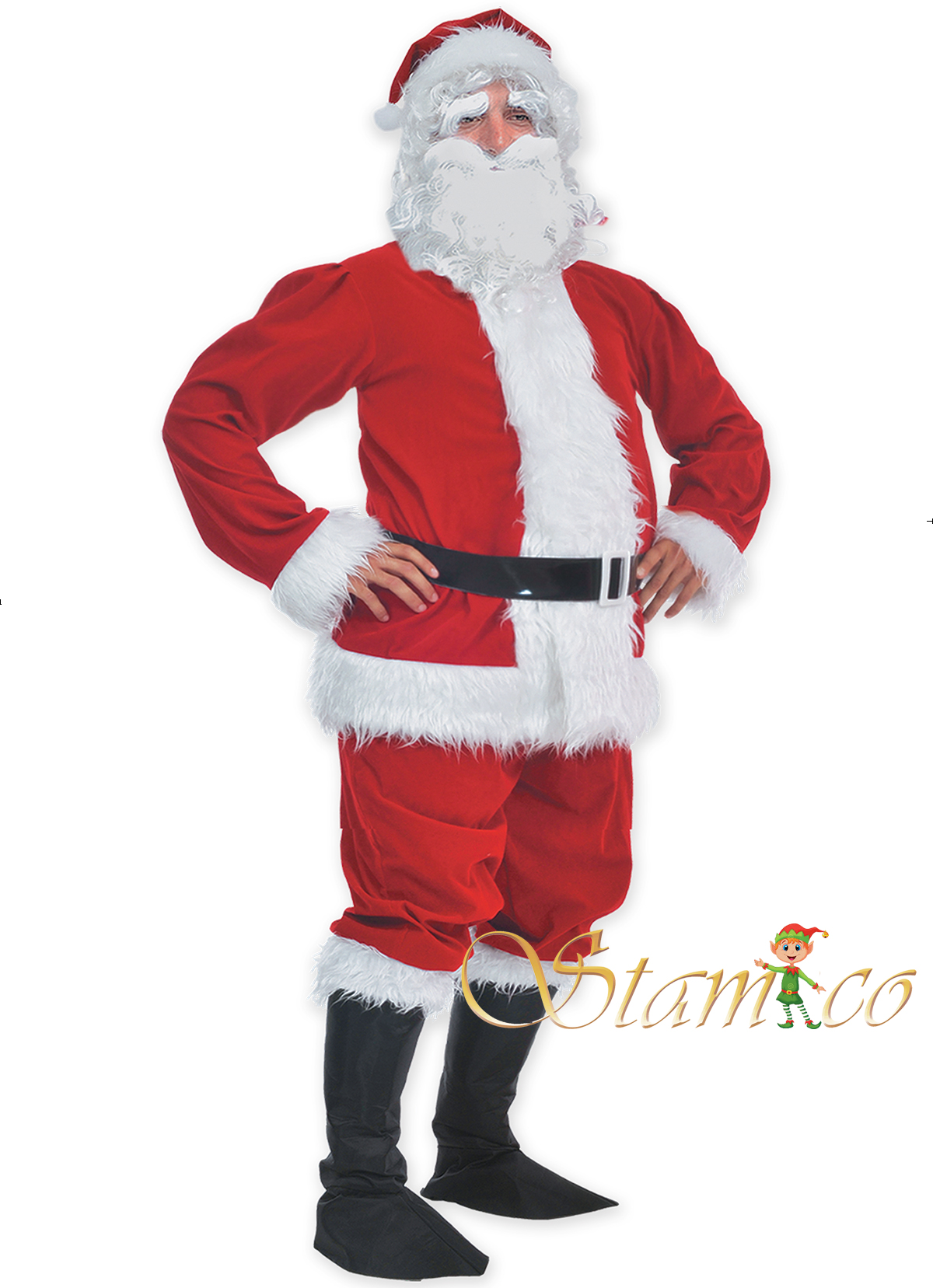 Χριστουγεννιάτικο κοστούμι που αποτελείται από: σακάκι, παντελόνι, ζώνη, σκούφο, μπότες,Η στολή είναι κατασκευασμένη από βελούδο